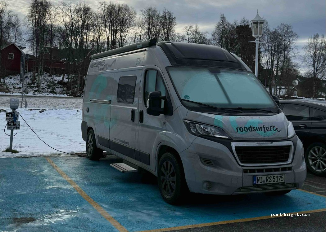 In the center of ARJEPLOG is this the only place you can stay with a motor home and have electricity. 4 places only for motor home, maximum length 10m