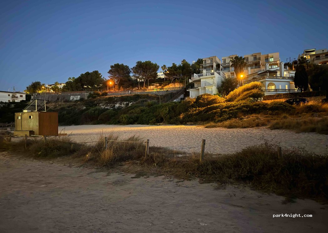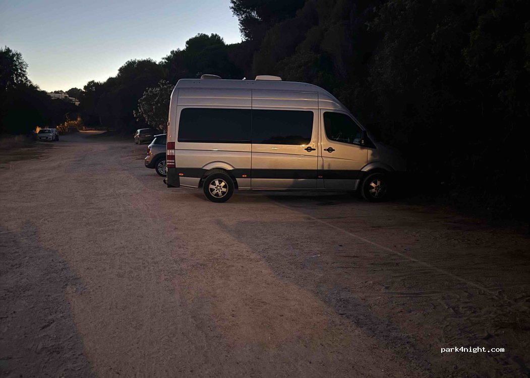 Parking pequeño pero por la tarde noche se vacía. hay un restaurante en la playa y un chiringuito. playa pequeña familiar agradable con agua cristalina. noche sin problemas