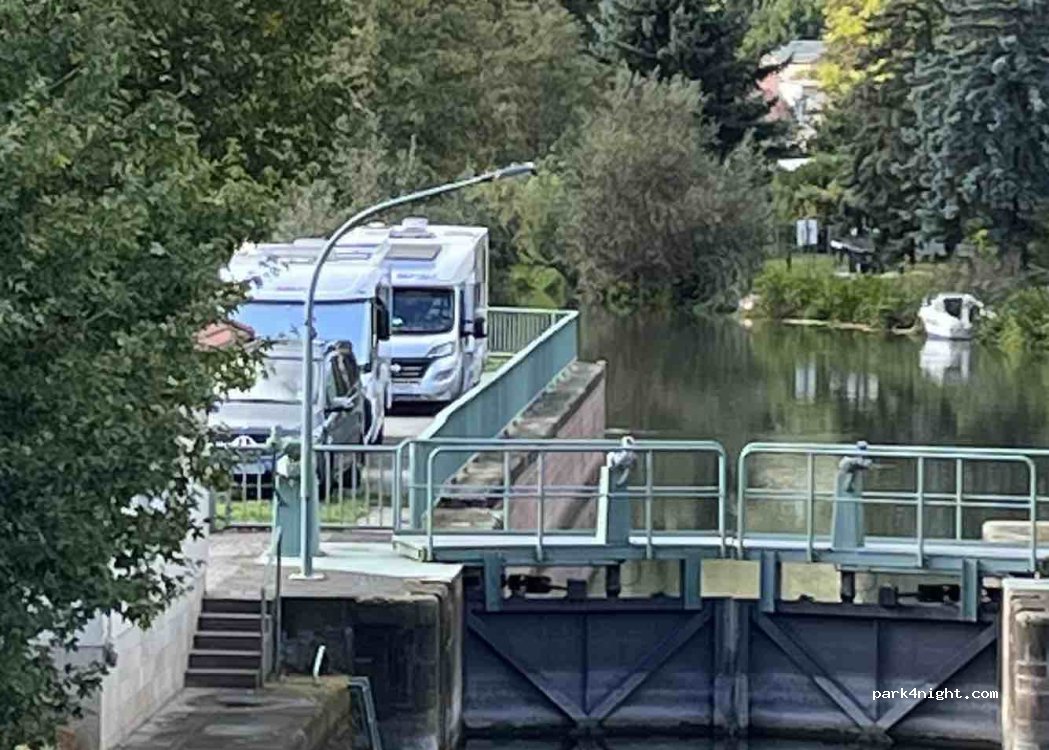 Sehr schöner Platz direkt an der Schleuse. Übernachten ist hier geduldet. Bitte den ersten P-Platz immer für den Schleuser freihalten. Ein Supermarkt ist gleich gegenüber. Bitte nicht quer stellen und kein Campingverhalten ( Tisch,Stühle) ! Für eine Nacht ein toller Platz.