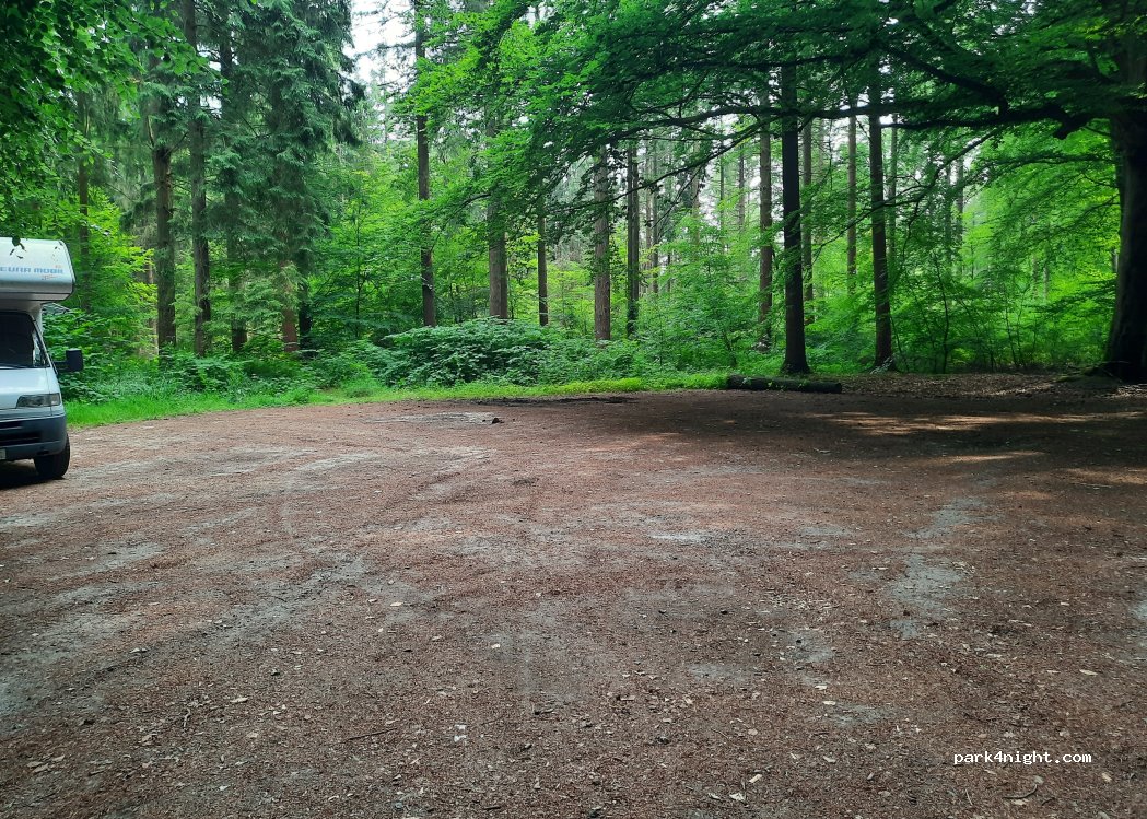 Einfacher Parkplatz im Wald ohne Versorgung. Verkehr auf benachbarter Nebenstraße etwas stärker als erhofft. Für eine Nacht ok.