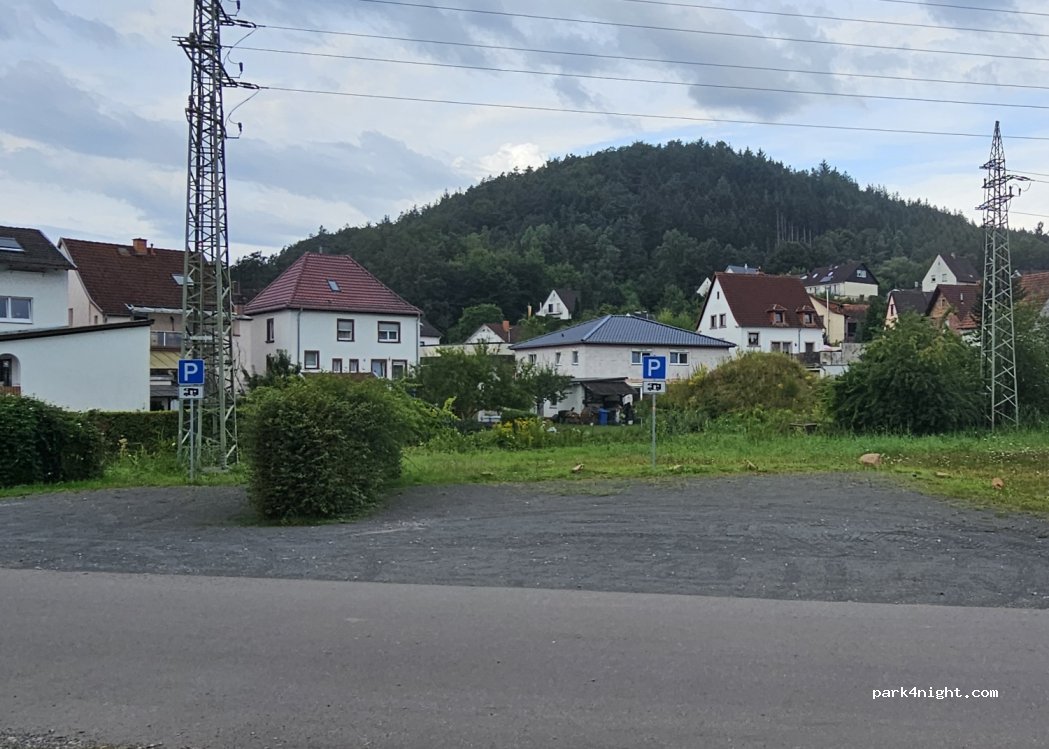 Stand August 2023: seit ein paar Wochen ist er als Stellplatz ausgewiesen. Lebensmittel gibt's leider keine mehr und die Pizzeria am Bahnhof ist leider nur noch ein Lieferservice. Aber am Sportplatz am Langenberg (10 min zu Fuß) ist noch eine leckere Pizzeria (Gusto Toscana).