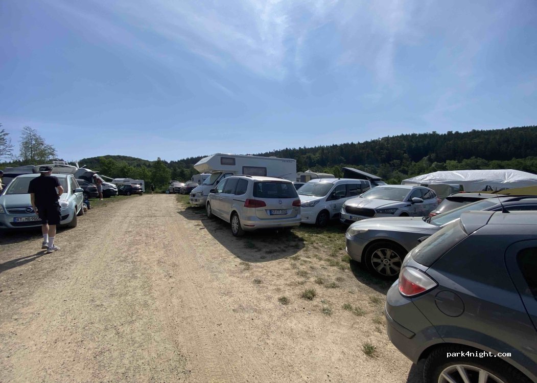 Camping au Nürburgring. Grand espace avec environ 1200 places de parking. Plusieurs lavoirs sur la place. Pour les courses, sortie supplémentaire près des tribunes vers T5 avec Event Center. Barbecue et feu de camp autorisés.