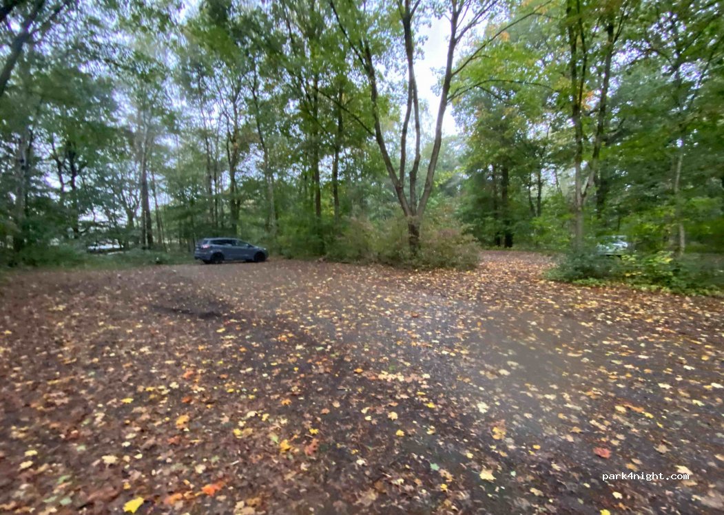 Very quiet parking space for 1 night under trees. No camping behavior but 3 tables with benches for picnics. Golf course nearby.
