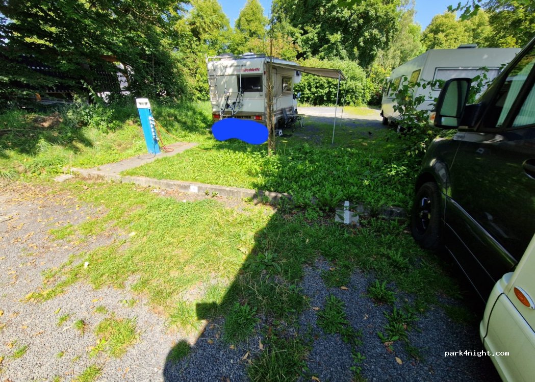 Simple and quiet pitch. Gently sloping gravel pitches. Several electricity columns available (in the center of the car park). Disposal somewhat difficult or not accessible. "Kaufland" shop 1.5 km away. Center about 10 minutes walk. Entrance to the swimming pool for one person is included in the price. Payment at the machine or at the cash desk at the swimming pool during opening hours.