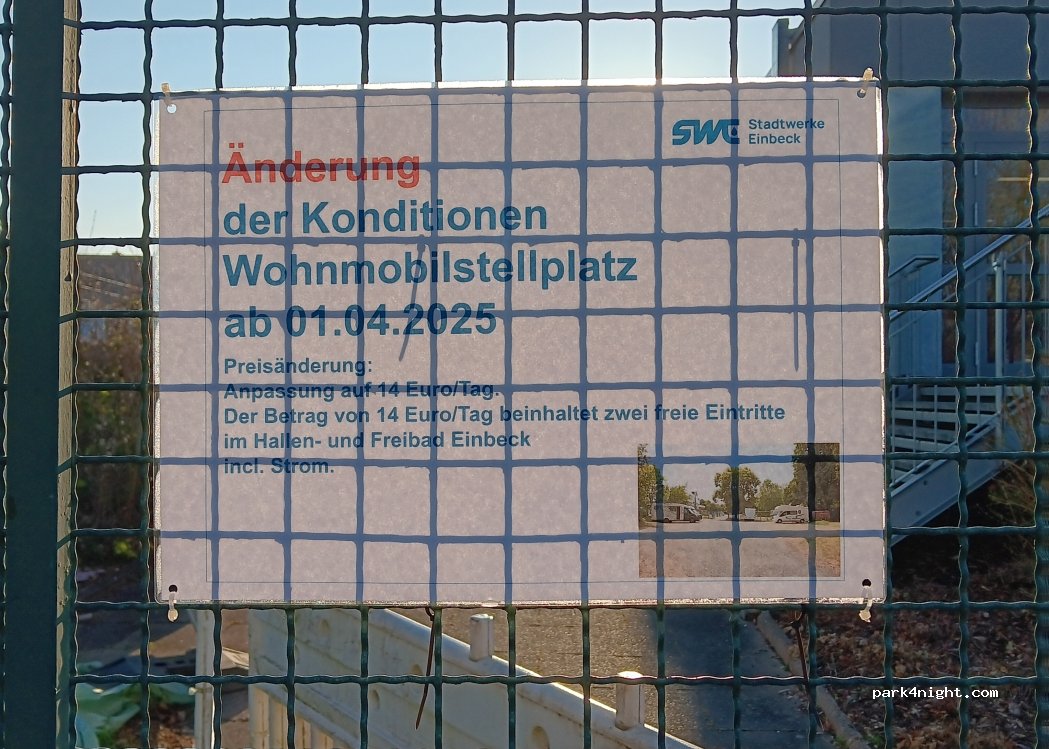 Toller Stellplatz mit Hallen-und Freibad.Danke an die Stadt Einbeck.14€ sind total angemessen, kurzer Weg in die Wunderbare Altstadt. Für Fachwerkfans ein Traum. Kleiner Tip: Essen gehen ins Brodhus. Extrem Lecker und riesige Bierauswahl?