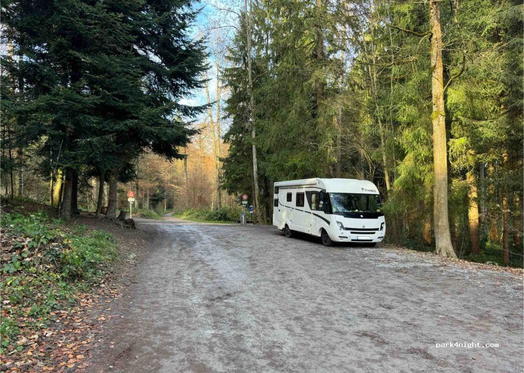 Parking forestier près des ruines du château de Wädenswil pour passer la nuit.