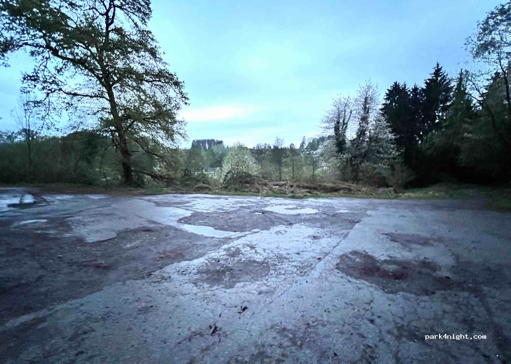 Ruhiger,am Wald gelegener Parkplatz. Super!Morgens direkt in den Wald...schön...man steht morgens mit Sonne auf. Super. Den werden wir uns merken, gerade wenn man mit Hunden unterwegs ist.