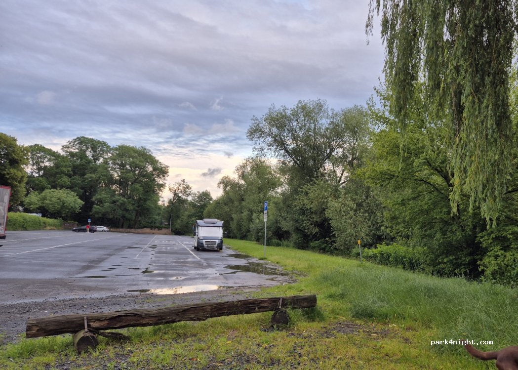 Sehr ruhig, für die Nacht kostenlos. Mit Hund toll zum laufen. Die Nacht war ruhig, allerdings kam um 7 uhr ein Reisebus der viele Frauen einsammelte. Demnach viel geschnatter . als wir aufwachten, war der Parkplatz voller autos. zum übernachten tut es der Platz tagsüber 2.50 € am Tag