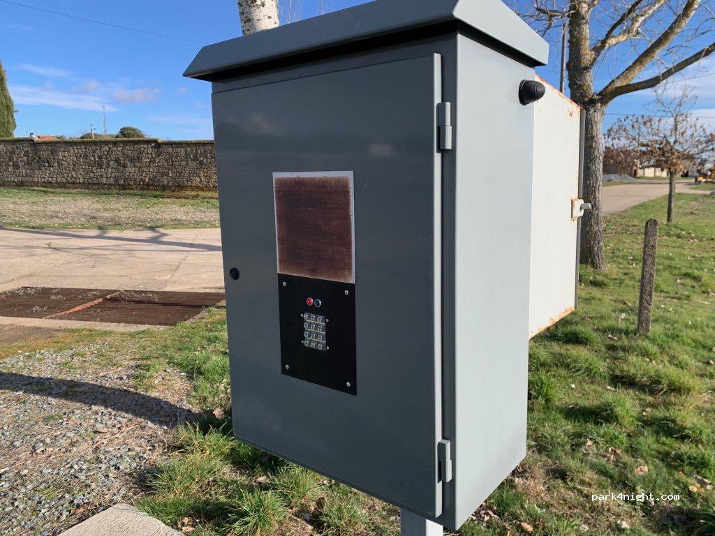 Aparcamiento gratuito para autocaravanas con estación de servicio en la parte alta del pueblo de FONFRIA, junto a la carretera principal N122 (visible desde la carretera). Además de ser una zona ruidosa (incluso por la noche), las parcelas no están niveladas. El grifo de agua potable, de alto caudal, no tiene rosca y tiene fondo cónico.