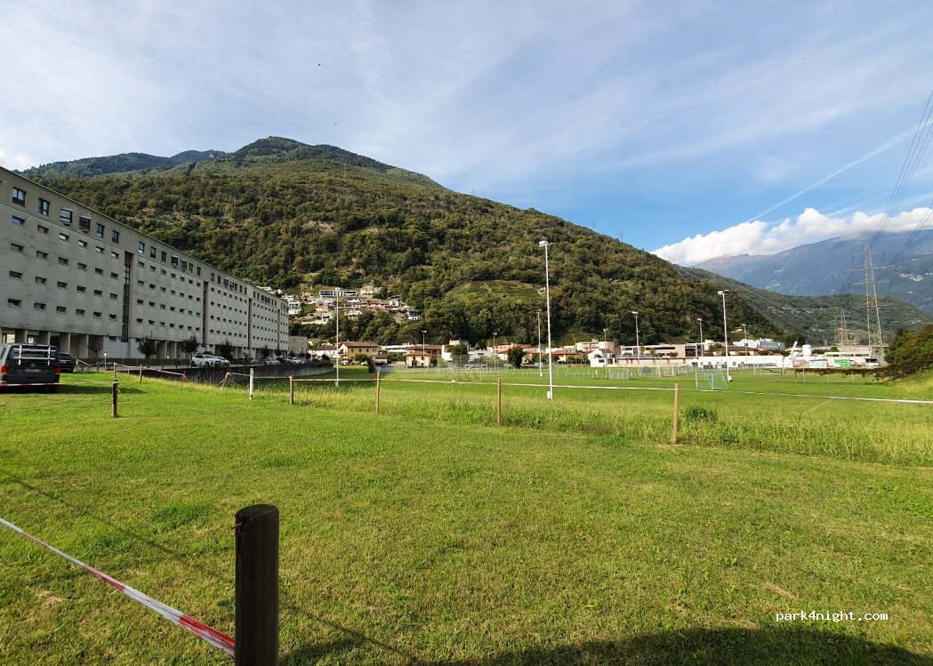 Direkt neben der Autobahn, aber gut für einen zwischenstopp. Man steht auf Gras, könnte nach viel Regen matschig sein. Fußballplatz daneben