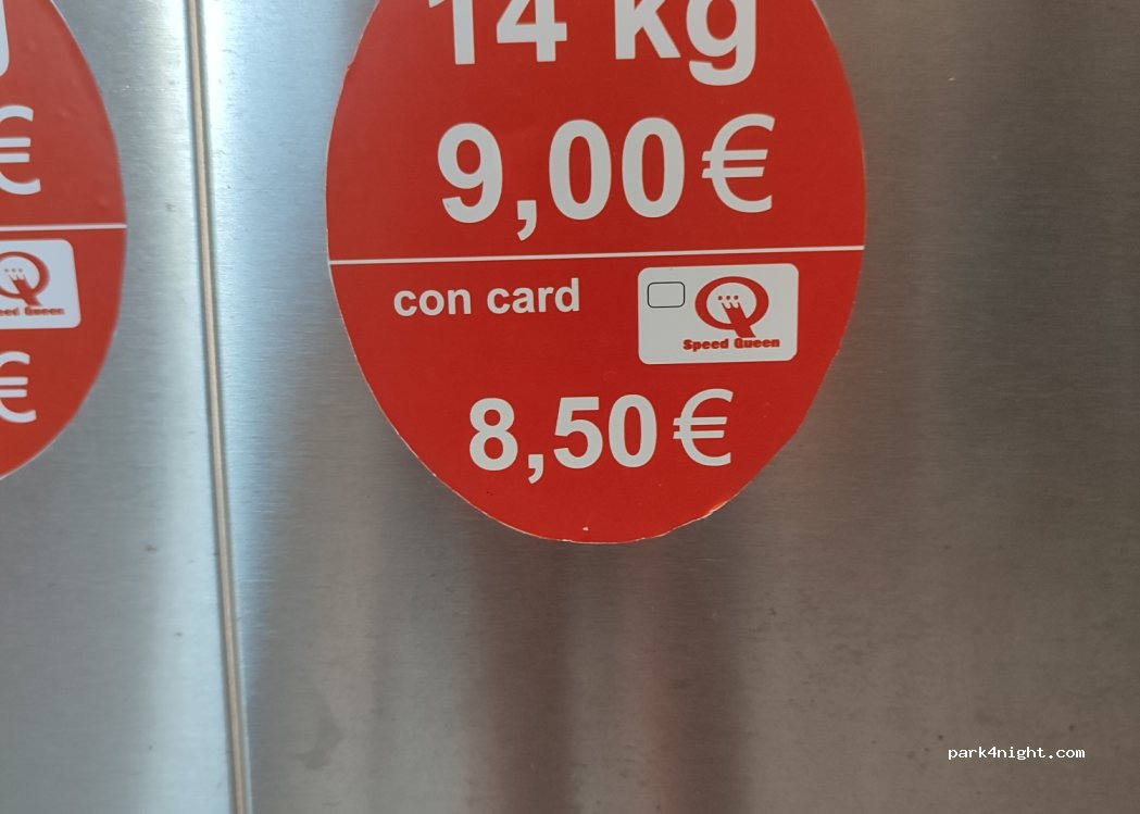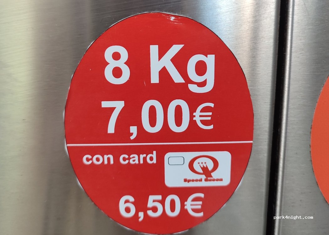 Lavanderia a gettoni. Parcheggiando davanti alle transenne, non è consentito entrare con il camper. La lavanderia si trova nel porto turistico.