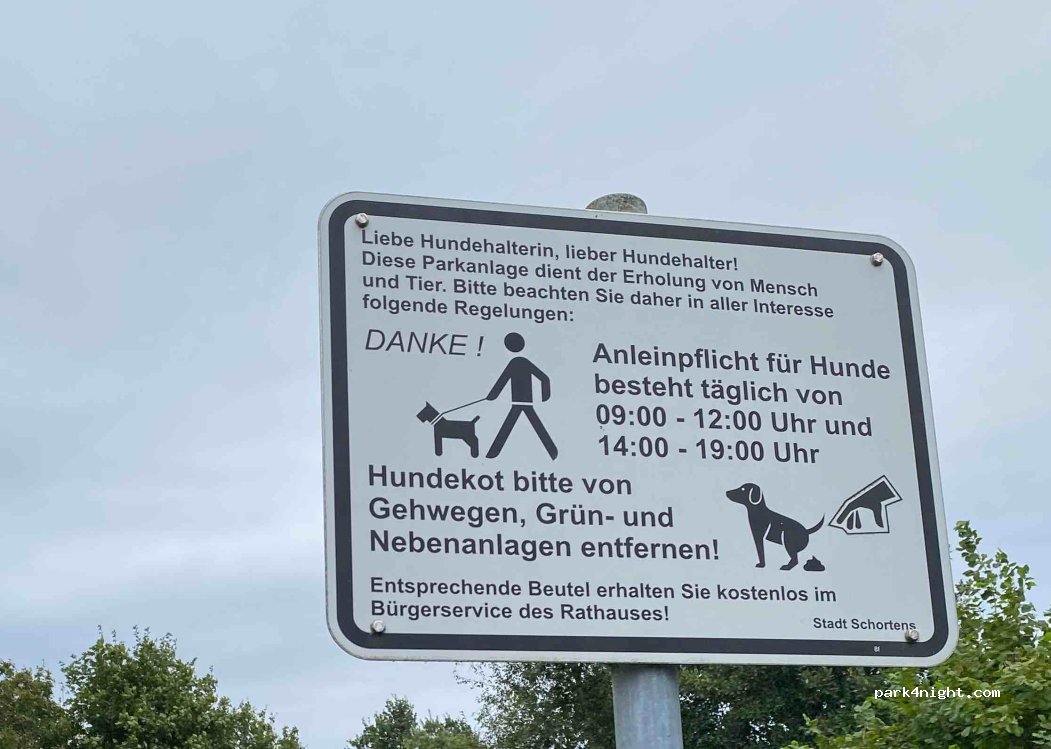 Toller Platz, Park ist super um mit dem Hund spazieren zu gehen. Hier dürfen sie sogar zu bestimmten Zeiten frei laufen (siehe Foto). Schlafen wollten wir hier allerdings nicht, denn es ist im einem Wohngebiet und sollte auch für die Einheimischen bleiben. Es muss nicht unbedingt zu einem Wohnmobil Stellplatz werden. Finde den Platz dafür auch zu klein. Maximal für 1 Kastenwagen, wenn überhaupt.