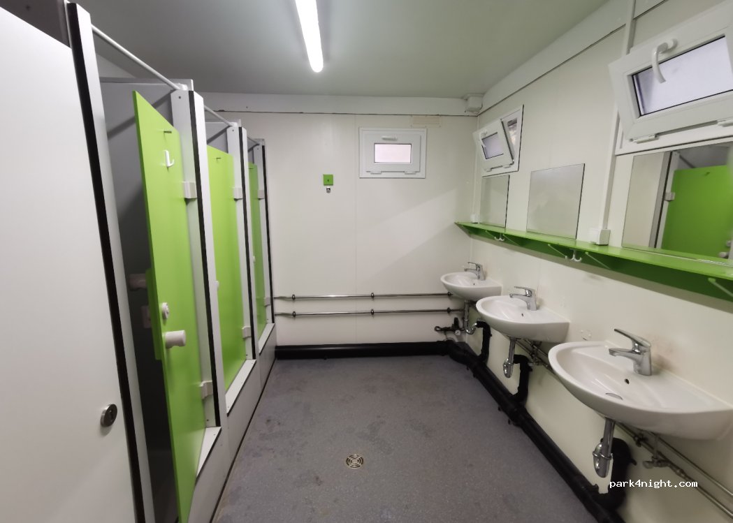 Good site with friendly helpful staff, the electric is paid on what you use as it's €37 pn I think it should be included. The toilet/showers are clean the water hot but the shower set up is strange the cubicles are tiny and it's about a 40 cm step up to get in, also you have to leave your clothes in the communal shower area to get changed, I'm Ok with that but perhaps other people wouldn't be.