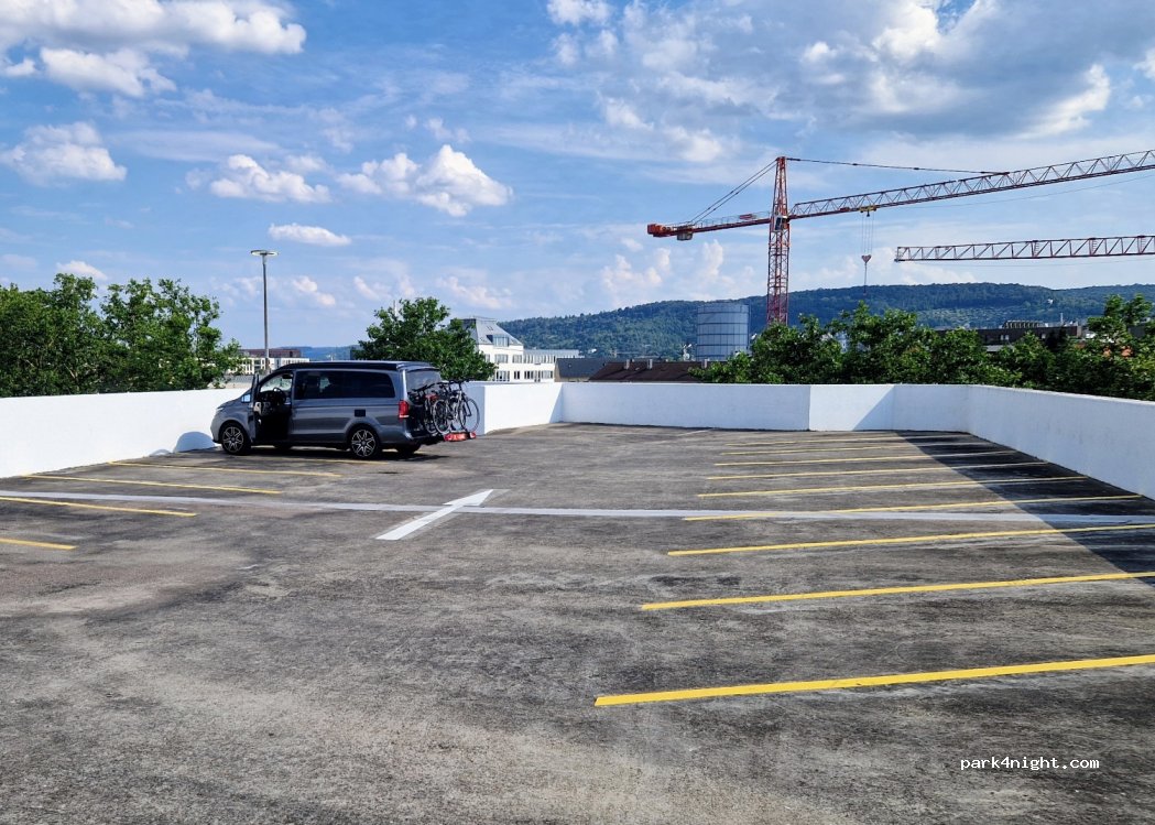 Hat bei uns gut geklappt: die Auffahrt auf's Oberdeck des Parkhauses ist recht eng, aber mit einem normalen Campervan (< 2 m Höhe) gut zu machen. Einmal oben war viel Platz, da nur einige der ca. 30 Parkplätze belegt waren. Wir konnten uns also ein schönes Plätzchen aussuchen und sind für eine Nacht ungestört dort gestanden. Von Freitag Nachmittag bis Samstag Vormittag haben wir 9,50 Euro bezahlt.