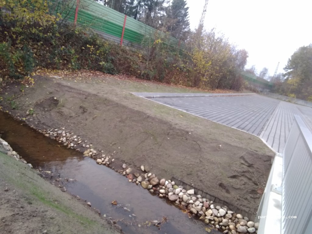 Einfacher Parkplatz auf Steinboden, direkt am Bahnhof/Bahnstrecke. Sehr zentral im Ort, in der Woche ebenfalls Pendler . Zum kurzen ausruhen okay
