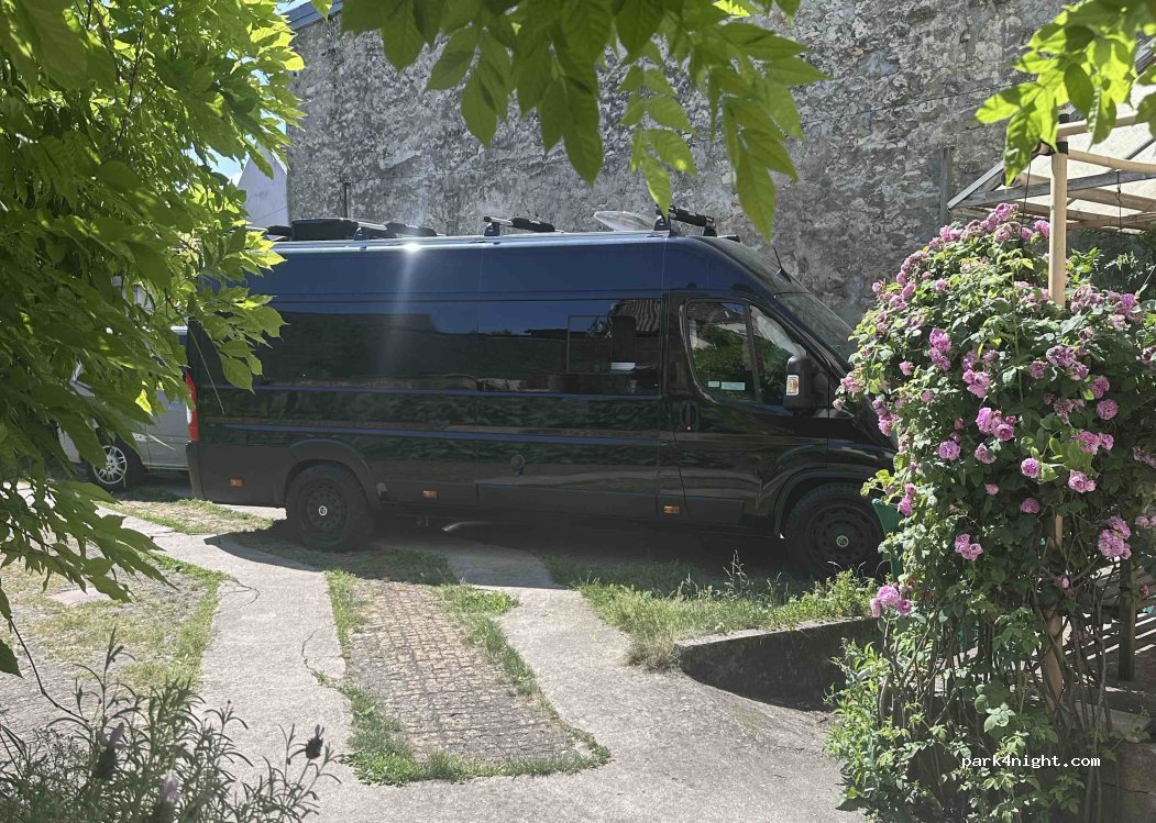 l2,2 L7 h 2,75. Un camping-car de l2,3 h2,9 L 6,2. En étant super précis, calme dans la manoeuvre, en prenant le temps lentement et avec des personnes qui guident dehors. C’ est passè très très juste. Et il faut prévenir la personne avant son arrivée. Et il faut laisser le portail ouvert le moins longtemps possible à cause des animaux. On peut jeter ses eaux grises dans le tout à l’egoût, un toilette douche dans le jardin peut être utilisé. Avec une rallonge on peut se brancher à une prise classique. 25 rue Cousté 94230 Cachan Rébecca Convenant