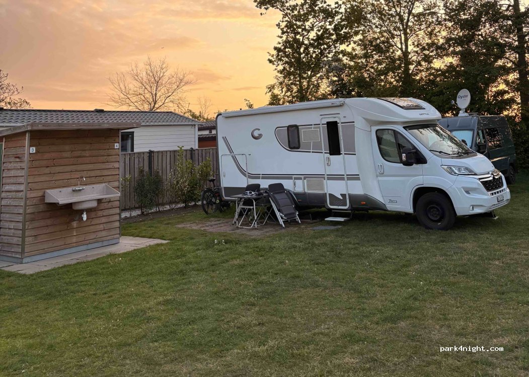classico e bel camping olandese, ben strutturato, servizi ordinati, puliti e propozionati alle dimensioni del camping, ristorante e vendita pane al mattino. Lo abbiamo usato per due notti per escursioni al mar del nord, ai bellissimi campi di tulipani e al parco di Keukenhof. È meglio prenotare on line, se pieno ti fanno parcheggiare fuori, senza energia, con uso di tutti i servizi. Gestori ok.