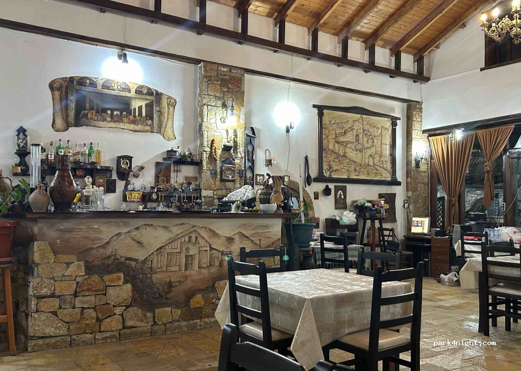Comme il est dit précédemment, super accueil. Le patron, d'une extrême gentillesse, est aux petits soins pour ses clients. Nous étions le seul camping-car en ce mois d'octobre (10€ par nuit avec électricité). Vue superbe sur la vallée. Nous sommes restés deux jours pour visiter la ville à pied. Bien sûr nous avons mangé au restaurant chaque soir. Un repas de roi excellent pour 20 € à deux, avec un litre de vin rouge maison très fruité. Sans compter le raki offert par le patron. On peut également lui acheter du vin à emporter. Bref, n'hésitez pas, c'est la bonne adresse.