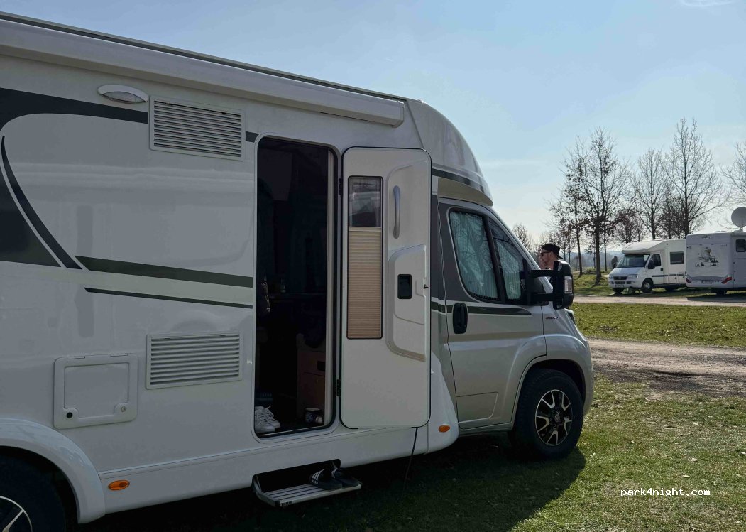 Sehr schön gelegener Platz mit schöner Aussicht. 30 Minuten läuft man ins die Stadt mit historischem Kern. Abends treffen sich junge Erwachsene auf der danebenliegenden Wiese zum Grillen etc. und fahren relativ schnell und laut an der Wiese vorbei, deshalb 1 Stern Abzug. Ab ca. 23 war es dann aber bis zum Morgen sehr leise und wir sind mit Vogelgezwitscher aufgewacht.