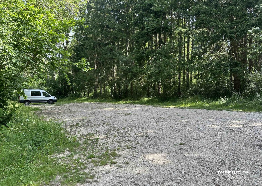 Schöner ruhiger Parkplatz mitten im Wald. Untergrund ist Gras. Nicht ganz eben. Für eine Nacht find ich den Platz perfekt. Es gibt keine Mülleimer.