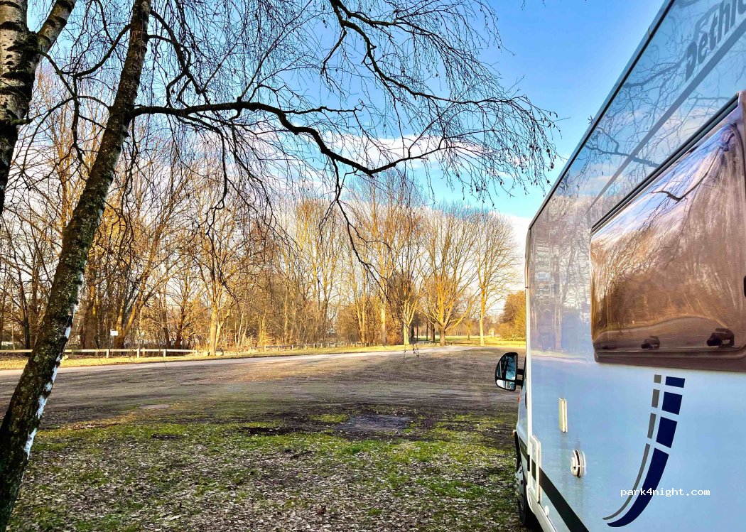 Parking simple et joli jusqu'à 2,8 t: l'ancien marché aux chevaux. En face de la place du marché, peut-être un peu plus calme que ça. Gravier, partiellement pavé, principalement plat. Il y a un supermarché juste à côté. Marcher et Piste cyclable directement sur la plaine inondable.