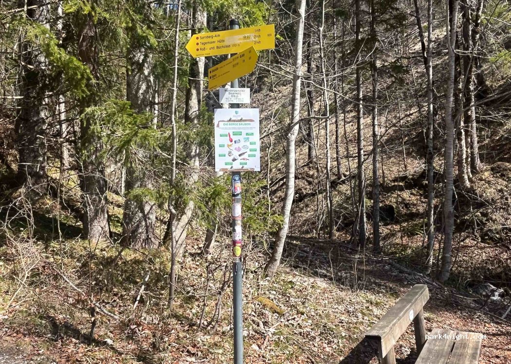 Plus grand parking pour Roßstein et Buchstein à côté de la route principale dans la forêt. Partie inférieure très plate et généreuse pour le stationnement, même pour les camping-cars plus grands.
