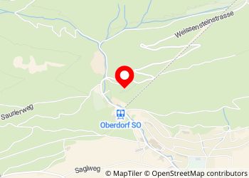 Nice flat space for about 2 small mobile homes with a small fireplace. Located at the end of a forest path. After the Schützenhaus car park and before the driving ban to the Weissenstein turn right and drive to the end of the gravel path. Noises of civilization can still be heard but not seen. Good starting point for hikes or gondola rides on the Weissenstein and in close proximity to the climbing area "Oberdörfer Klus".