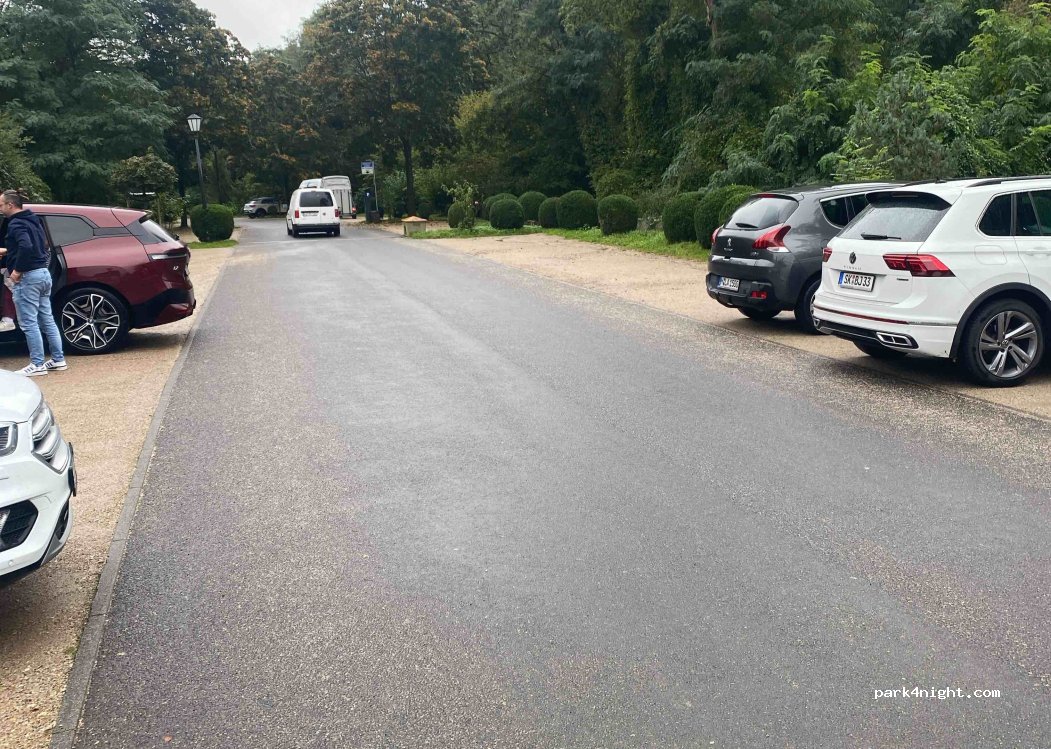 Oberhalb des PKW-Parkplatzes beim Parkplatz für Reisebusse stehen 10 Parkplätze für Wohnmobile bereit. Parkgebühr 10,-€ pro Tag. Leider tagsüber oft von PKW belegt. Keine VE. Bei uns war der Ticketautomat kaputt. Nachts standen wir alleine. Übernachtung erlaubt?