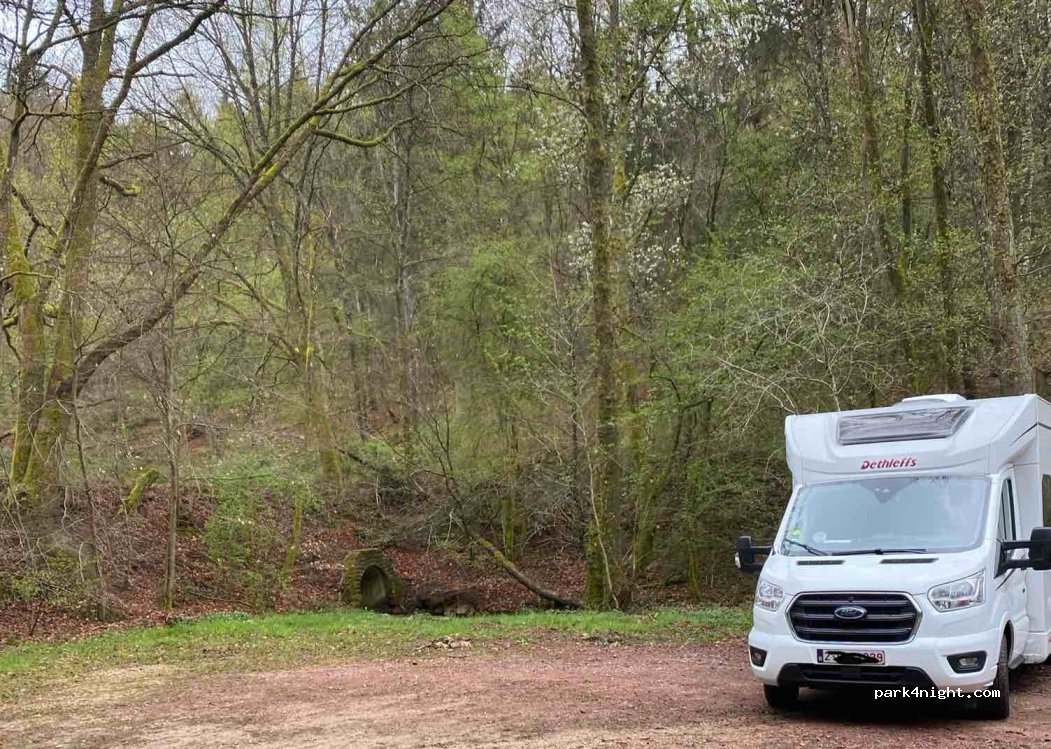 Lieu calme et situé dans la forêt. Parking plat, toilettes à disposition, lac et balades possibles. Rien à dire, nous avons passé une excellent nuit !