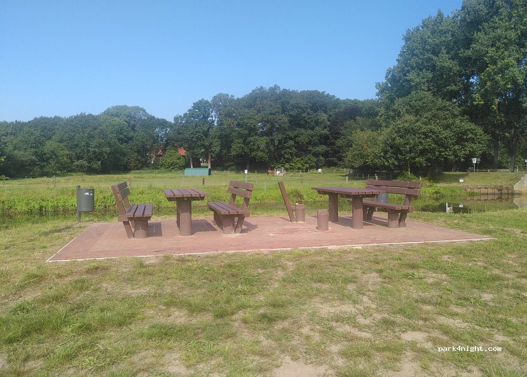 Sehr schöner Platz für eine Nacht, direkt an der Hunte, mit Picknicktischen und -Bänken. Sehr ruhig und genügend Platz zum spazieren gehen.