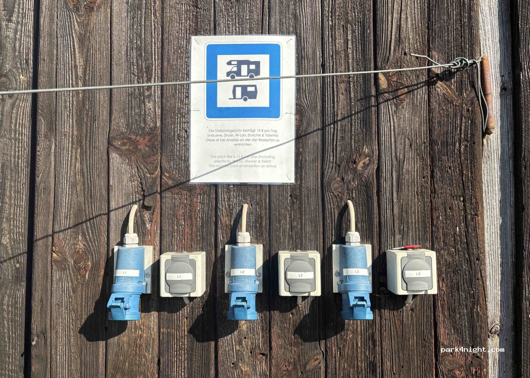 Wir verfügen über 6 Stromanschlüsse. Auch ohne Stromnutzung kostet der Stellplatz 15 EUR.