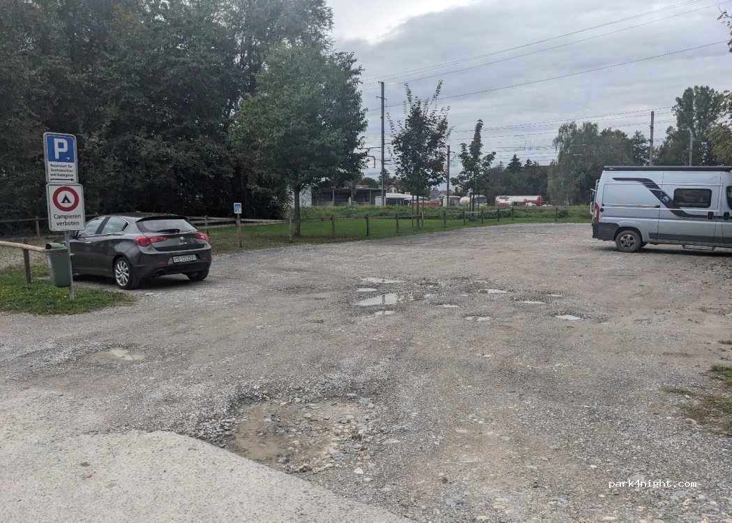 Aparcamiento en el lago de Constanza. Mucho ruido de trenes.