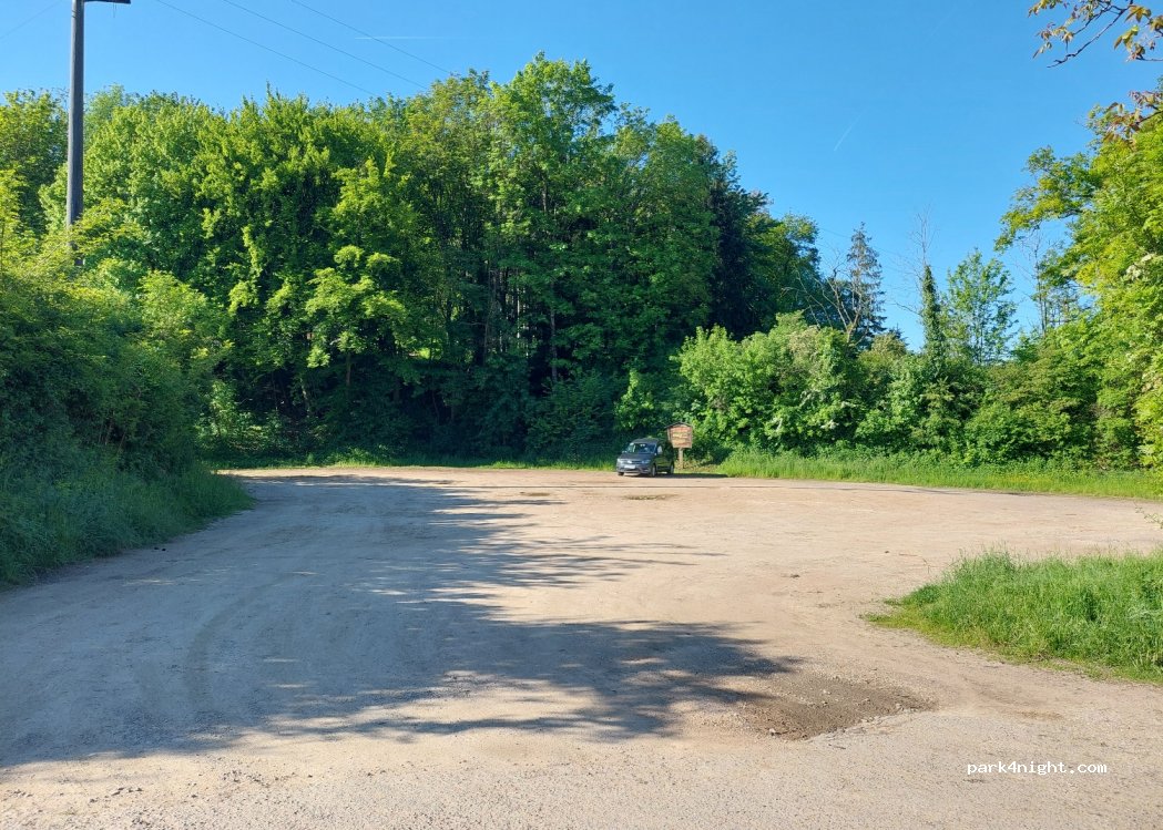 Fácil aparcamiento de grava. Un poco más arriba, hay una zona de barbacoa. El estacionamiento es utilizado principalmente por caminantes. Por la noche, solo la carretera federal de enfrente podría representar un problema. Sin embargo, no está muy ocupado por la noche.
