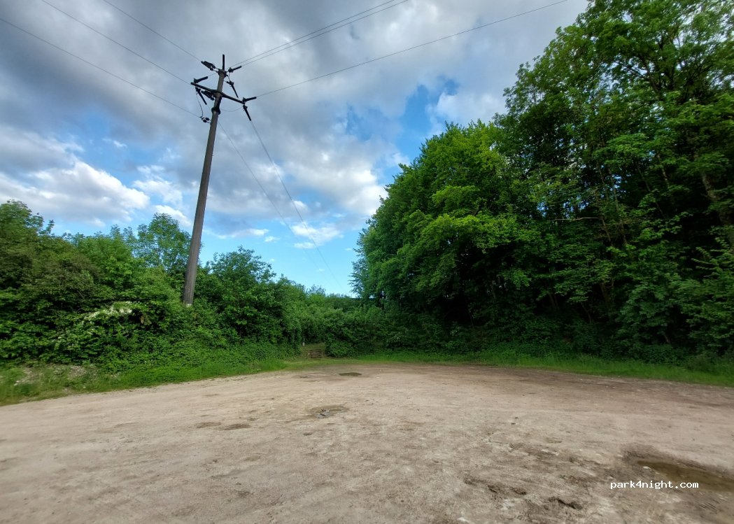 Ein relativ ruhiger Platz, umgeben von Büschen und ziemlich groß und gerade. Nicht zu verwechseln mit dem kleinen Platz direkt an der Straße, erst den kleinen Weg hoch fahren. Dem Weg folgend kommt man schnell auf einen tollen Weg in den Wald. Am Platz gibt es noch eine Sitzmöglichkeit und einen Lagerfeuerplatz.