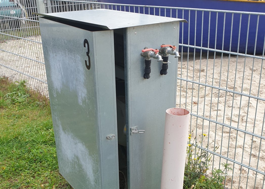 Teuerster Stellplatz vergleichbarer Leistung, den wir je hatten. 30 €/Nacht, Kinder ab 4 zählen als Erwachsene. Anlage super gepflegt, DU/WC warm & sehr sauber. Strom + V&E direkt am Stellplatz (Foto). Grauwasser nur über Schlauch mit Pumpe am Fahrzeug oder per Schüssel/mobilem Tank in das hohe Rohr. Dem Betreiber viel Kraft für die Sanierung des hist. Schwimmbeckens von 1909! Ein Mammutprojekt!