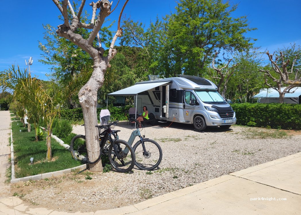 Great camping. All infrastructure ok! Sanitary places VERY clean! Good restaurant & bar. Enough sunbeds at the beach. Good swimming pool. Note its not sandy beach (small stones& sand). Nice, qiute, green, full of shadow. You can enter at night. You can not use air condition in camper between 10.00 p.m - 2 p.m. Place for grey water before entrance. Don’t follow GPS from beach with big camper!!!