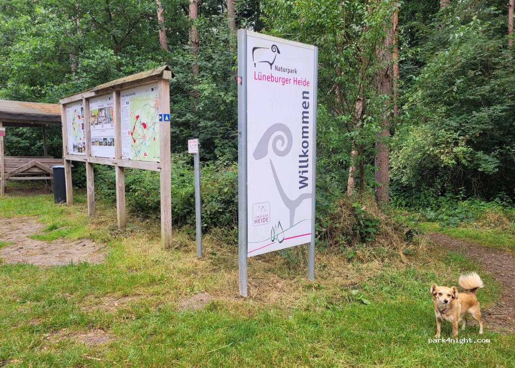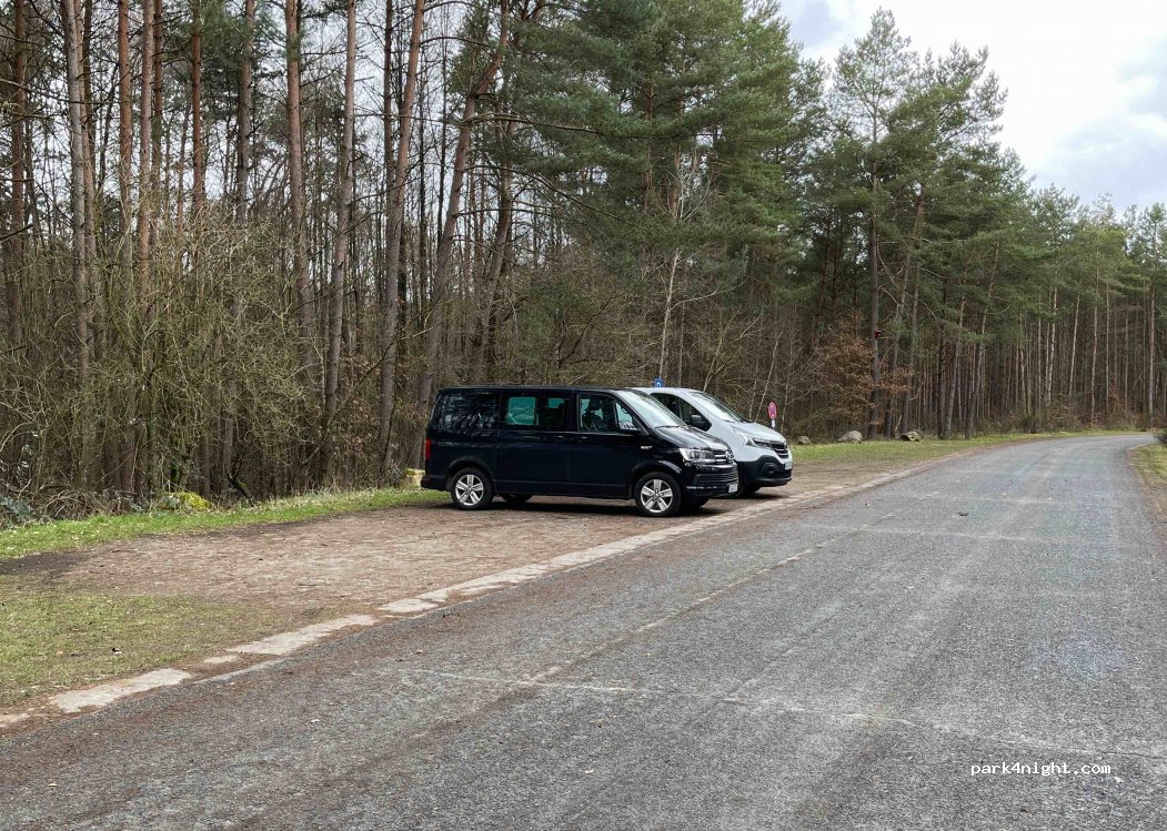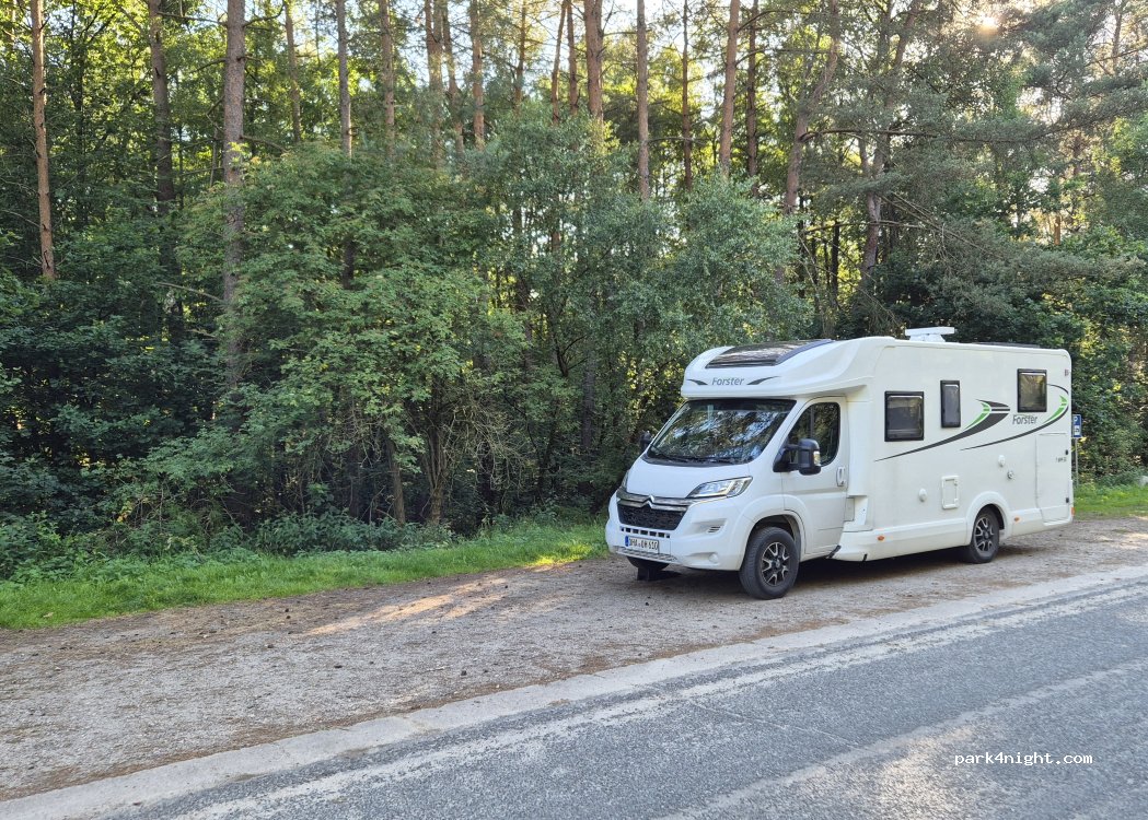 Ruhiger Stellplatz an einer Wanderparkplatzbucht. Kein Verkehr. Sehr Naturnah. Kleiner Wanderweg durch die Heide geht hier ab.