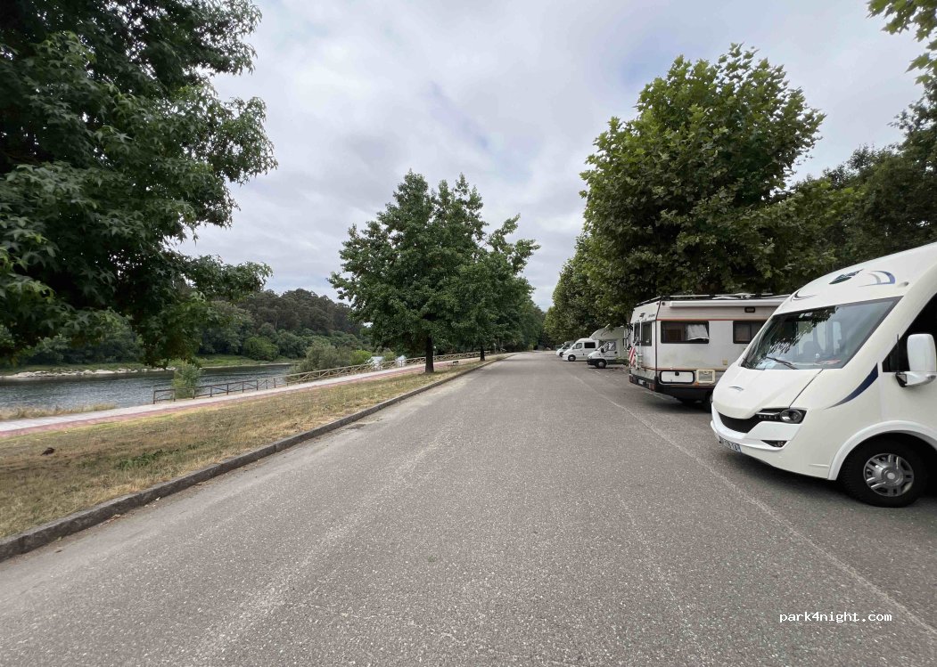 Quiet area on the banks of the Minho River and close to Canuda Park. Parking is only 2 hours there, and overnight stays are no longer allowed.
