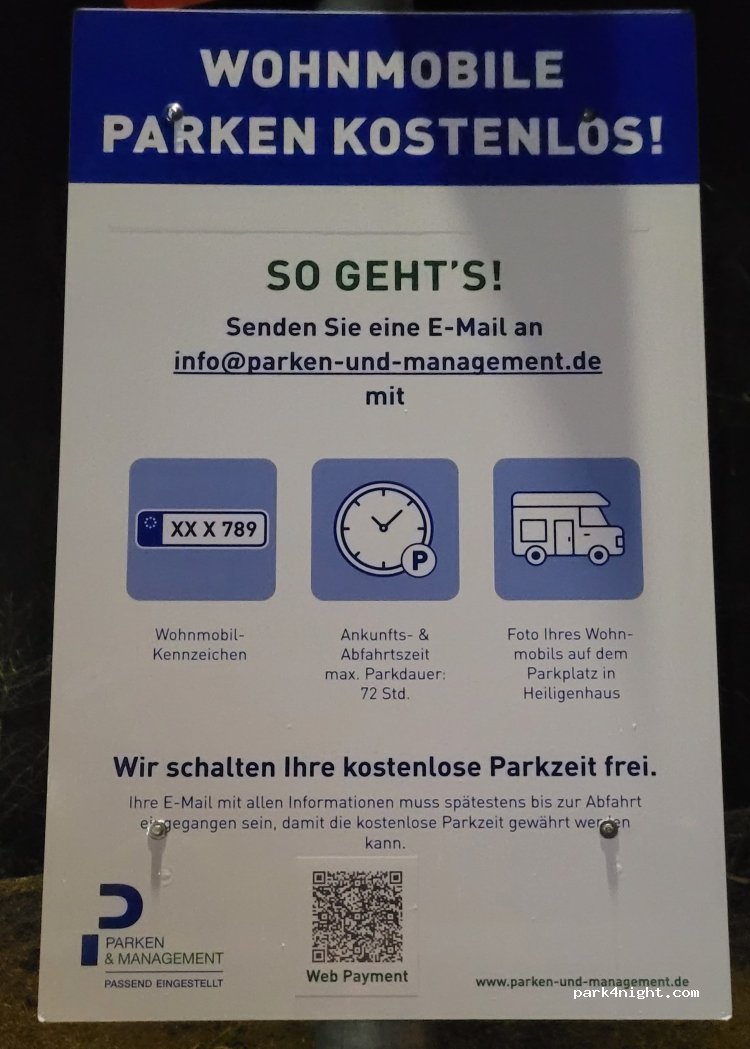 Drei mal habe ich eine Mail an das Parkmanagement gesendet mit Foto vom Womo wie beschrieben. Mailer Dämon . Mailadresse wohl nicht mehr aktuell. Bin dann wieder gefahren. Der ganze Parkplatz ist Kameraüberwacht. Da kommt schnell mal eine hohe Gebührenrechnung zusammen,wenn es keine Möglichkeit gibt die Parkgebühren freistellen zu lassen.