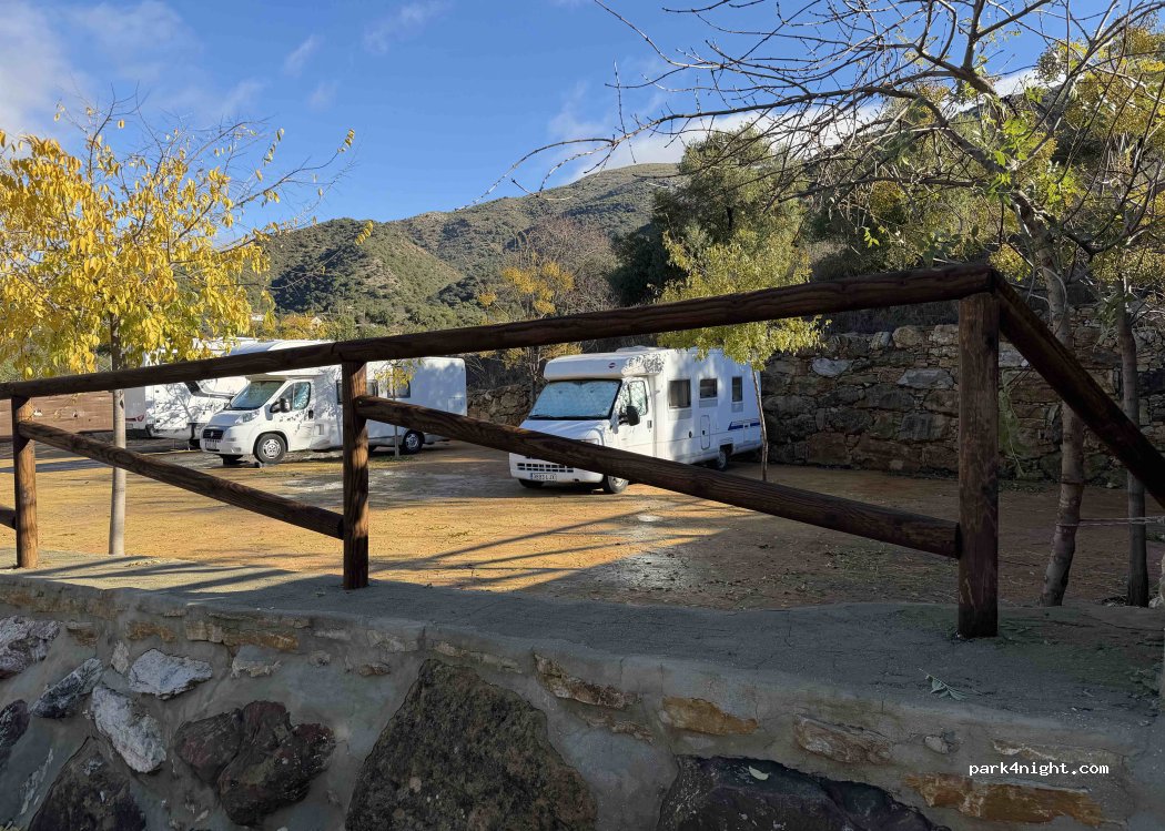 Aire de stationnement pour camping-cars dans le village de Jimera de Libar. Joli petit coin tout neuf. Le parcmètre est hors service, aucun service n'est plus proposé. Stationnement uniquement ! Environ six emplacements sont disponibles pour les camping-cars. Idéal pour explorer les routes des Artezuelas, des moulins et des plaines. Une boutique et un bar se trouvent à la gare. Parfait pour le tourisme rural. Merci de préserver la propreté des lieux. L'évacuation des eaux usées n'est plus possible. Un robinet situé sur la plateforme supérieure a été retiré ; il ne reste qu'une vanne filetée.