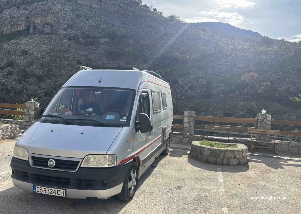 Es el parking del Hostel Izvor. Un espacio muy caluroso durante el día en verano, ya que no tiene árboles, es todo d cemento. El río está al lado pero tiene difícil acceso. Lo bueno: - el autobús línea 21 a Pogdorica está al lado y cuesta 0,90€ el trayecto. Sale cada hora en punto. - el precio para 2 pers. autocaravana electricidad es 15€
