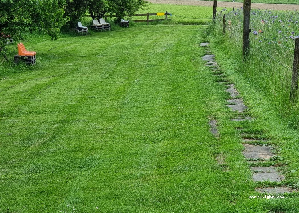 Cadre magique dans le verger entre les arbres fruitiers qui étaient en fleurs et vue magnifique sur les champs. Accueil sympathique et mise à disposition de l'électricité. Nous étions seuls et avons passé une nuit au calme. Malheureusement plus de miel mais il y a une tirelire pour laisser un petit quelque chose à notre hôte.