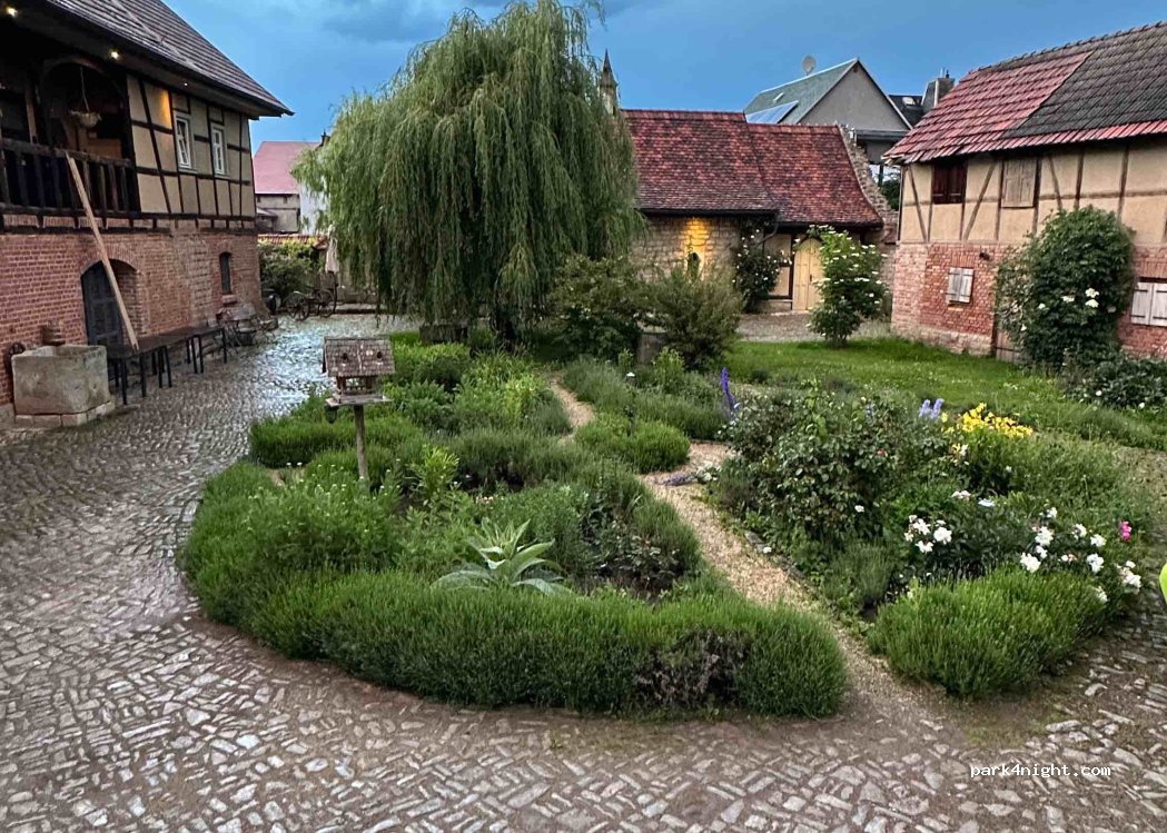 Hier wird ein Wohnmobil Dinner als 4-Gang Menü angeboten im Restaurant "Magda", nach dem Essen ist das Stehen bleiben über Nacht auf dem Hof möglich. Das Essen und die Atmosphäre sind grandios und die Mitarbeiter sehr hilfsbereit. Eine telefonische Voranmeldung ist erforderlich. Ein toller Platz in der Nähe von Erfurt im Ortskern von Alach.