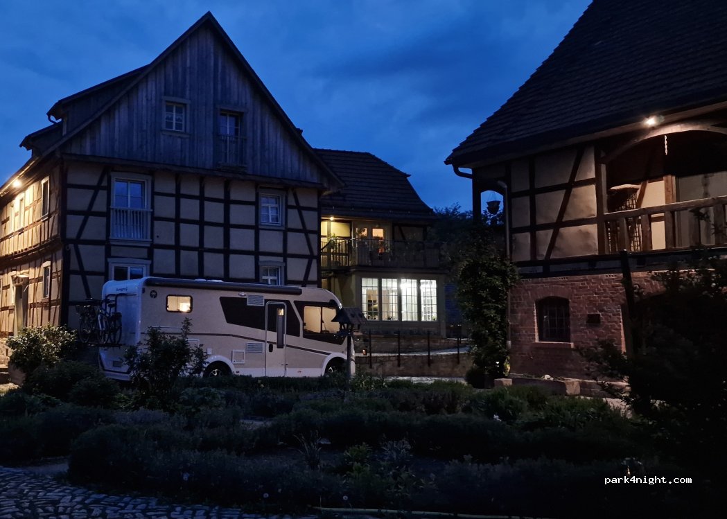 A mobile home dinner is offered as a 4-course menu in the "Magda" restaurant, after which you can stay overnight in the courtyard. The food and the atmosphere are terrific and the staff very helpful. Pre-registration by telephone is required. A great place near Erfurt in the center of Alach.