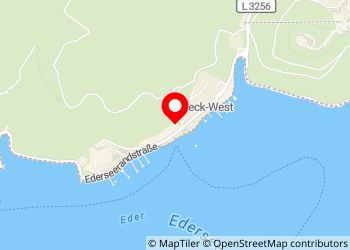 Public car park slightly higher up with a view of the beautiful Edersee. View of the lake in front, forest directly behind.