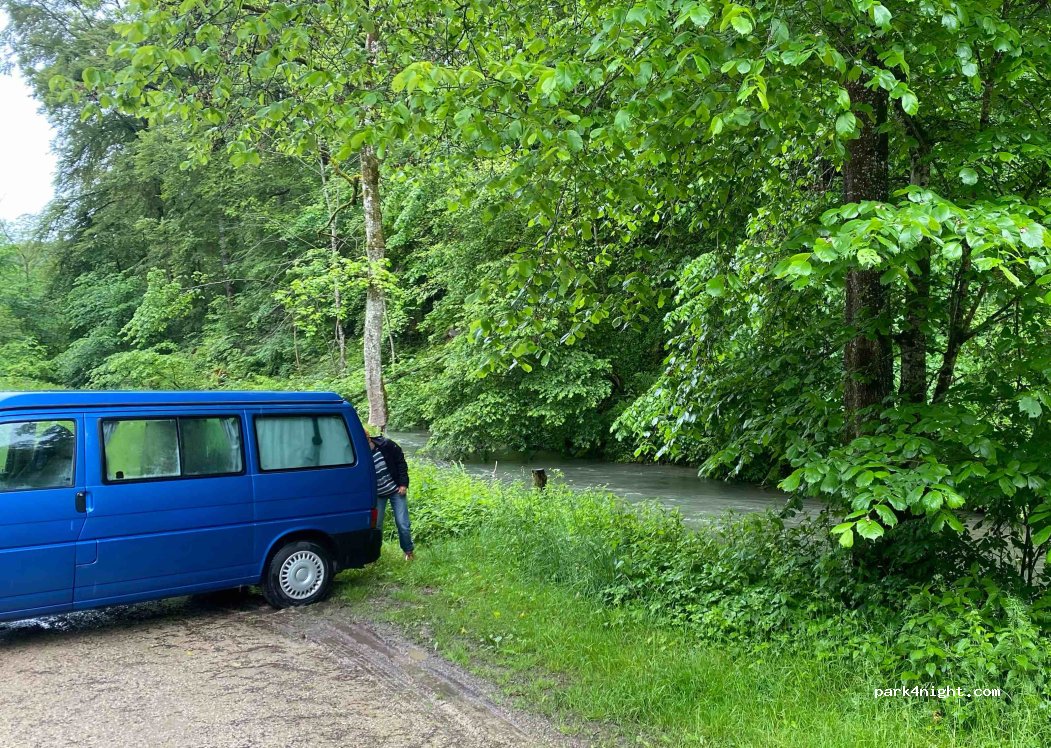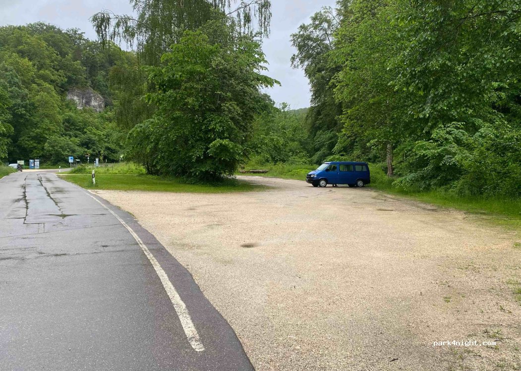 Nachts sehr ruhig, eben. Schräg gegenüber etwas verdeckt gibt es noch einen kleinen Parkplatz direkt an der Lauter mit Morgensonne. 200m zu Fuß zu einem Gasthaus mit Biergarten und kleiner Speisekarte mit (einfacher) schwäbischer Küche. Genau richtig nach einer langen Wanderung!