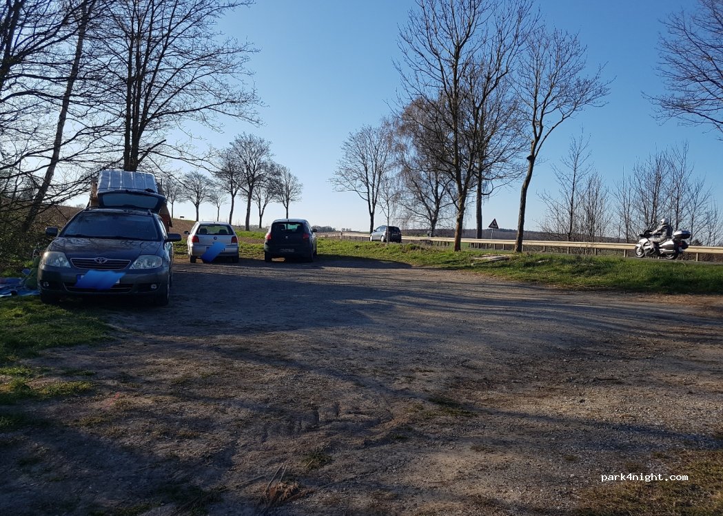 Petit parking sur route de campagne avec quelques arbres. Bruit de voiture correspondant à la route de campagne. En fait, NE convient PAS aux nuitées. C'est juste beaucoup trop fort et extrêmement inégal. Il y a déjà un énorme seuil dans l'allée, ce qui peut endommager la voiture si vous conduisez incorrectement. Le parking est suffisant pour un stationnement de courte durée pour une randonnée jusqu'aux falaises du Bodensteiner. Pas pour plus.
