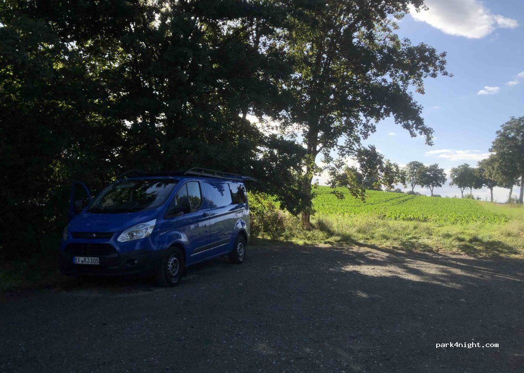 Small parking lot on the country road with a few trees. Corresponding car noise from the country road. Actually NOT suitable for overnight stays. It's just way too loud and extremely uneven. There is already a huge threshold in the driveway, which can damage the car if you drive incorrectly. The parking lot is sufficient for short-term parking to hike to the Bodensteiner cliffs. Not for more.