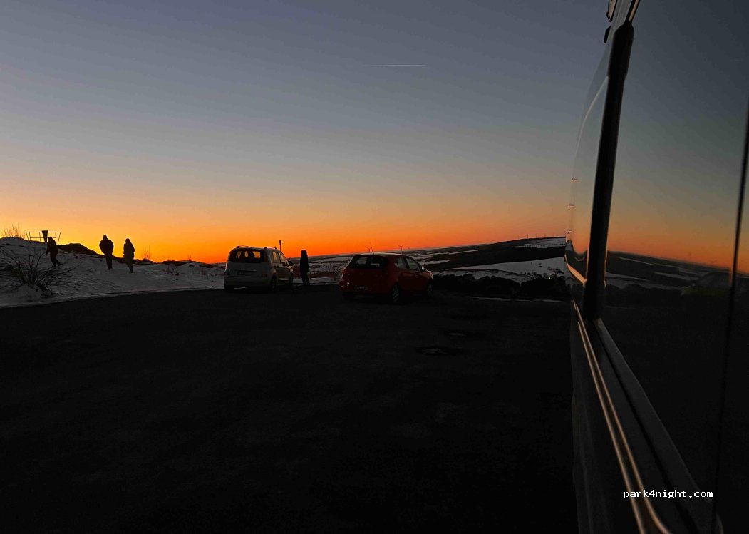 Restaurant hat von 11-17 Uhr auf, man stört abends also niemanden, wenn man dort steht. Der Parkplatz wird von vielen "Sonnenuntergangstouristen" besucht. Das gibt das gute Gefühl, man stünde nicht auf einem Restaurantparkplatz. Platz ist inzwischen mit Schotter bedeckt, aber trotzdem sehr steil. Gegen 8 kommen Leute, die dort arbeiten. Es sagt niemand etwas, aber fühlt sich etwas komisch an.