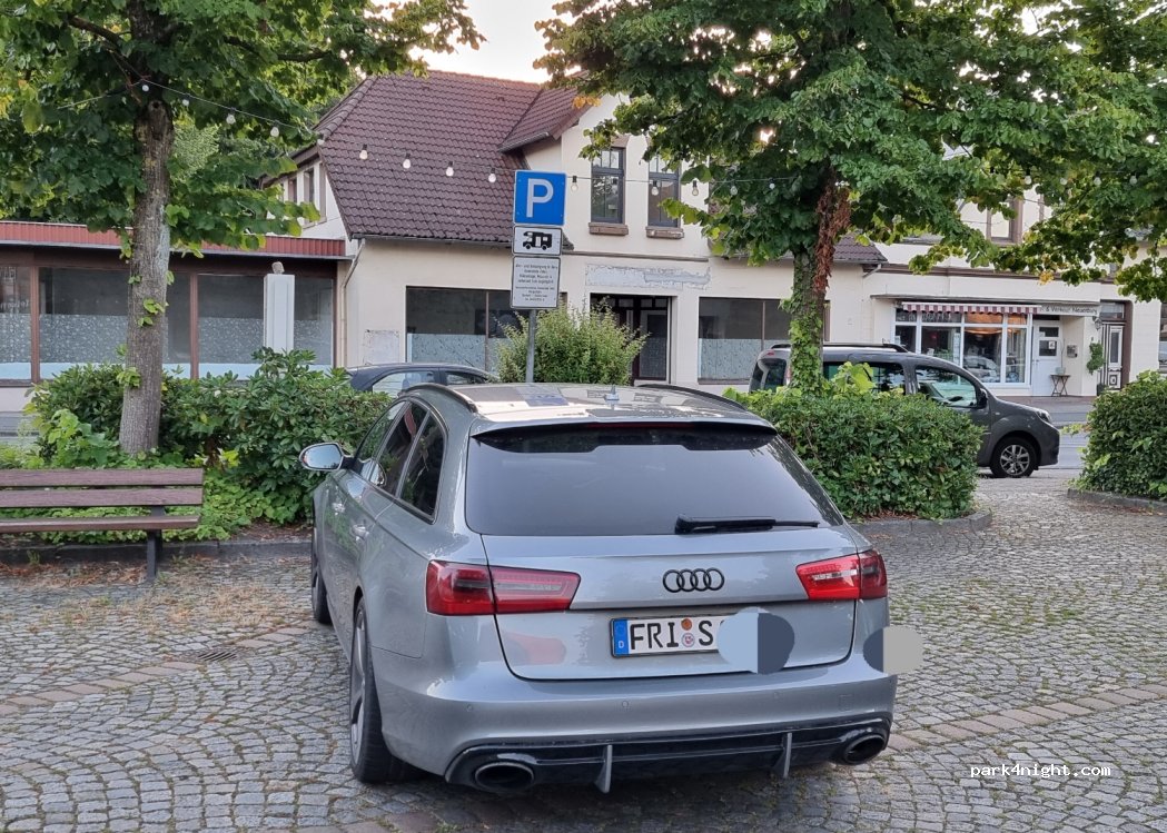 Gebührenfreier Stellplatz für zwei Wohnmobile in Neuenburg. Der Stellplatz liegt auf einem Parkplatz. Befestigter Untergrund mit Beleuchtung.